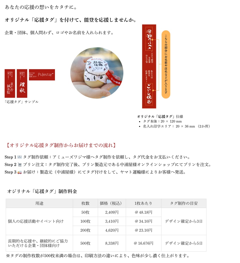 ※タグの制作料金は、アミューズワジマ様へお支払いください。